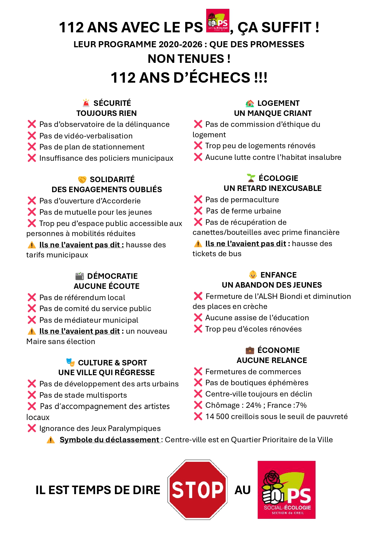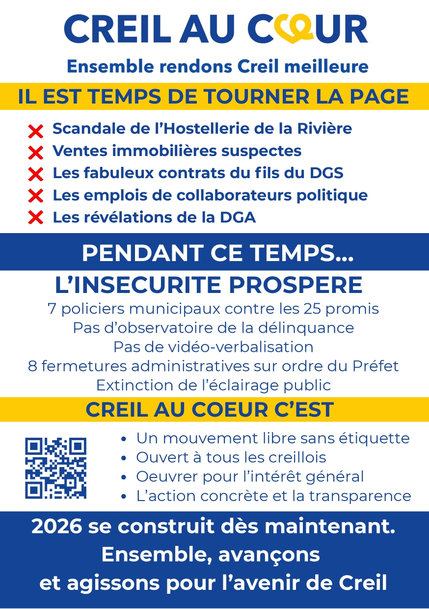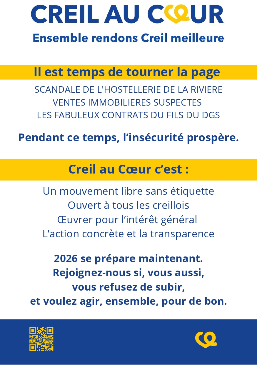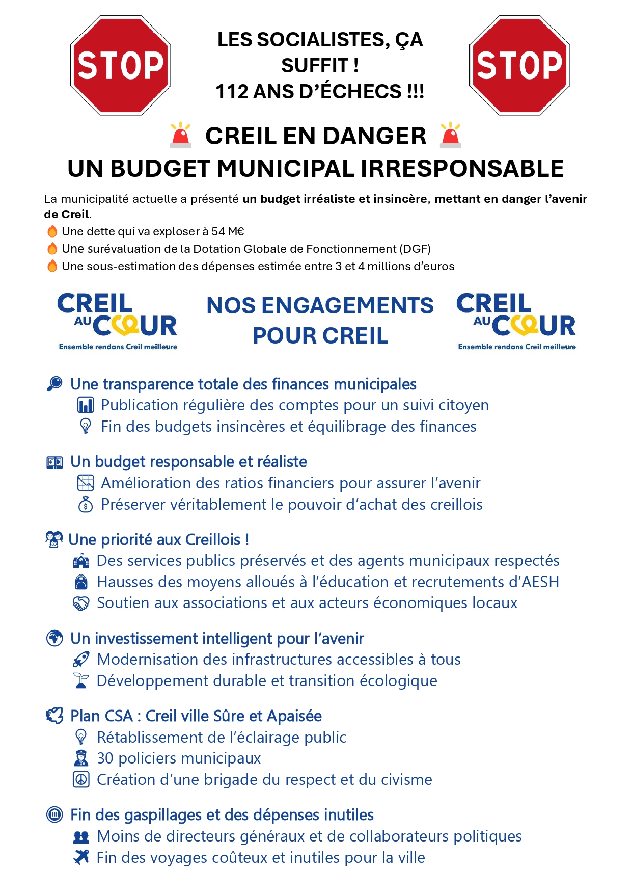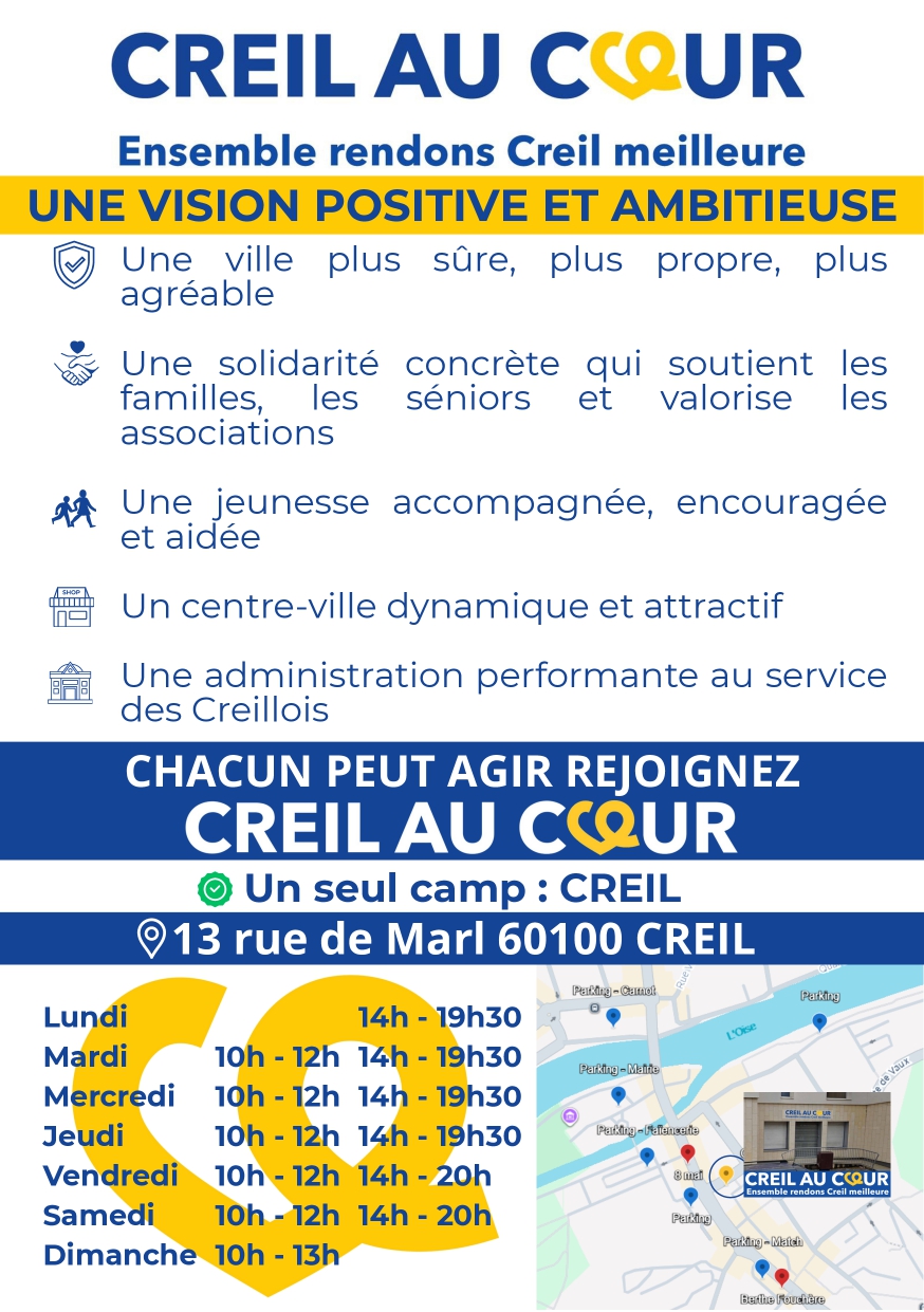 Bienvenue dans l’espace où vous pouvez retrouver l’ensemble des tracts, documents et supports d’information diffusés par Creil au Cœur. Transparence, proximité et pédagogie : chaque tract que nous distribuons sur le terrain est mis à votre disposition ici, pour que chacun puisse s’informer librement, partager nos propositions et suivre l’évolution de notre projet pour Creil.